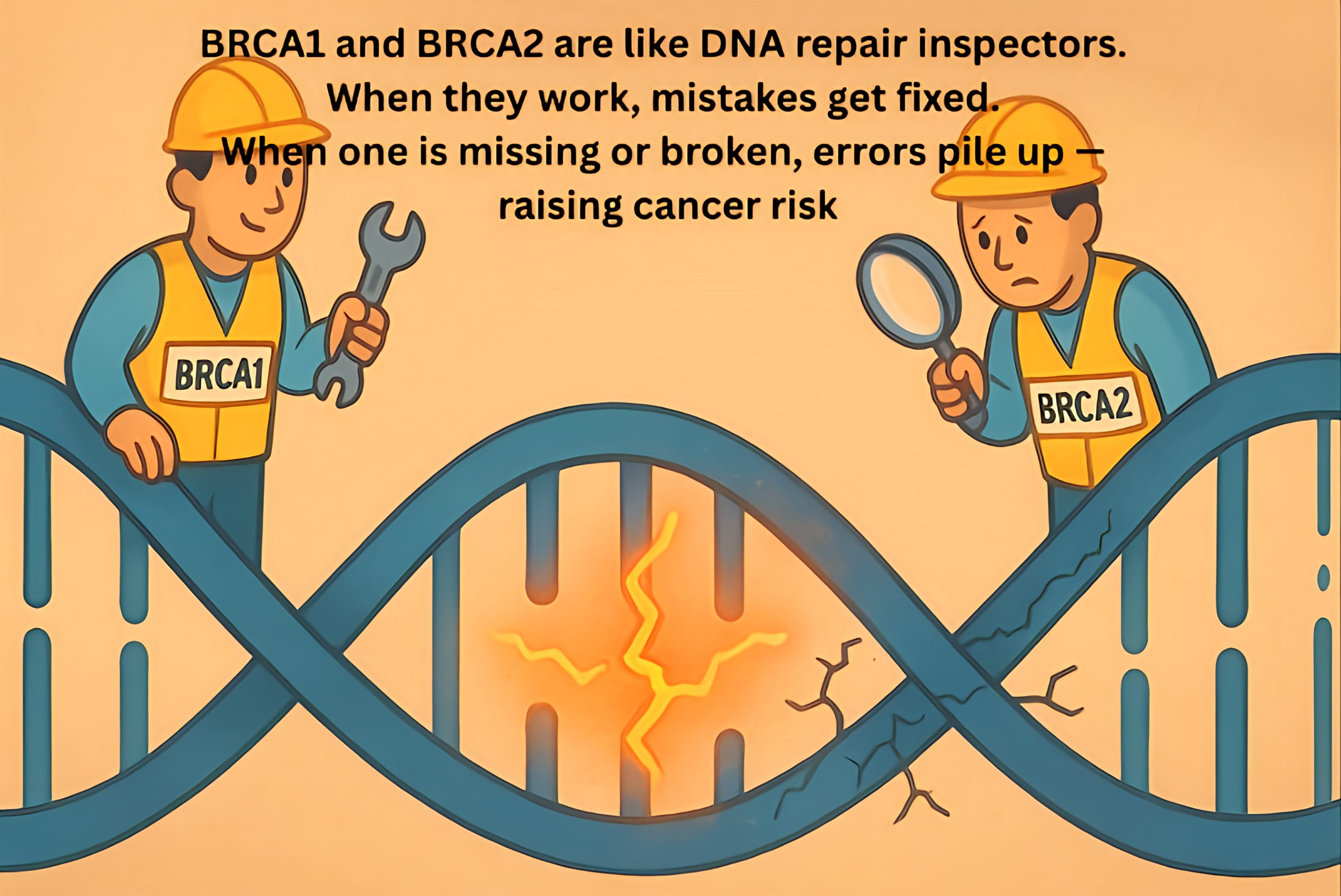 You may have heard of genes like BRCA, made famous by Angelina Jolieâs story. Despite how it is often described in the media, BRCA is not a âcancer gene.â It is part of the DNA repair machinery. Its normal job is to help fix dangerous types of DNA damage. When systems like this fail, mutations begin to accumulate, and cancer risk rises.